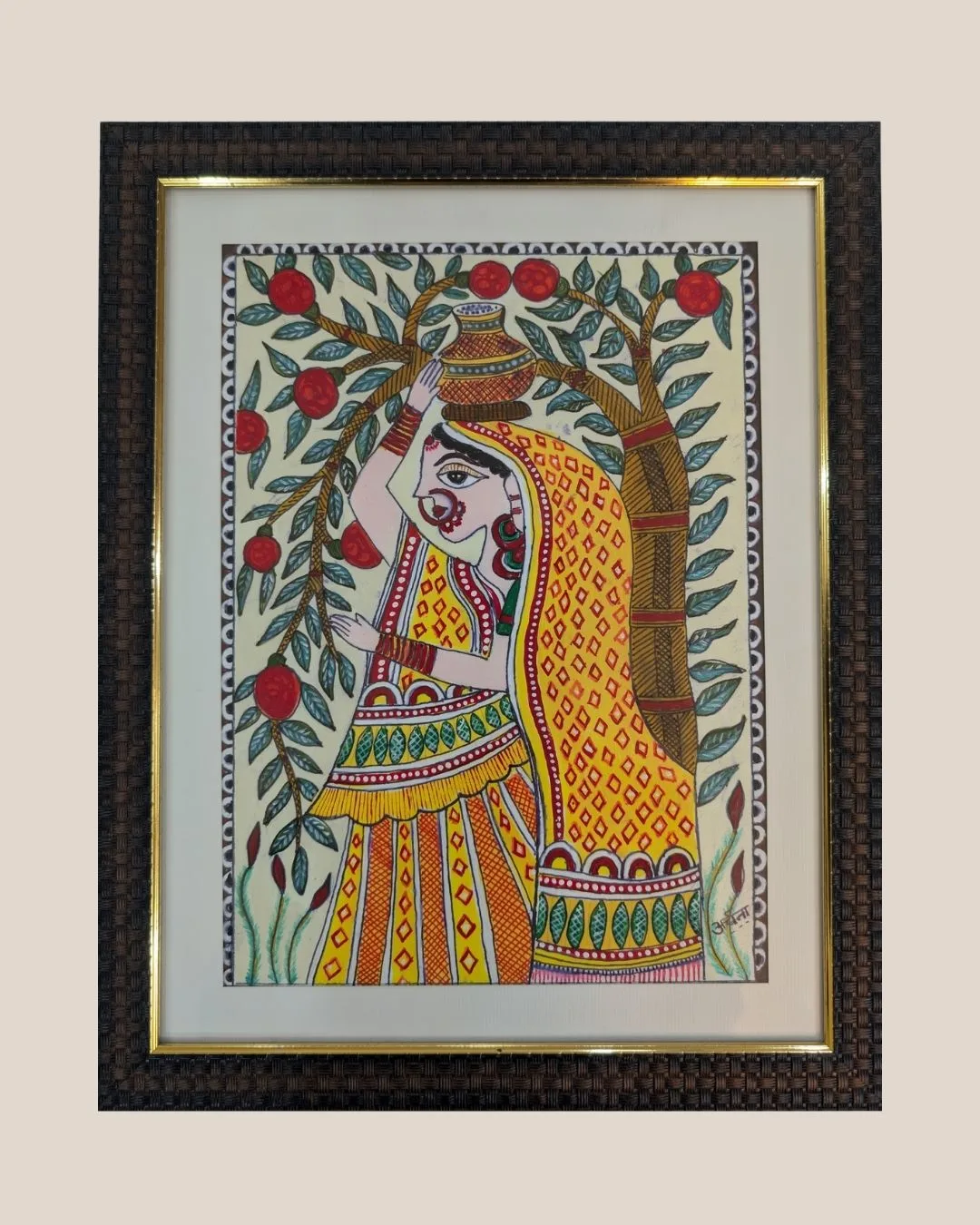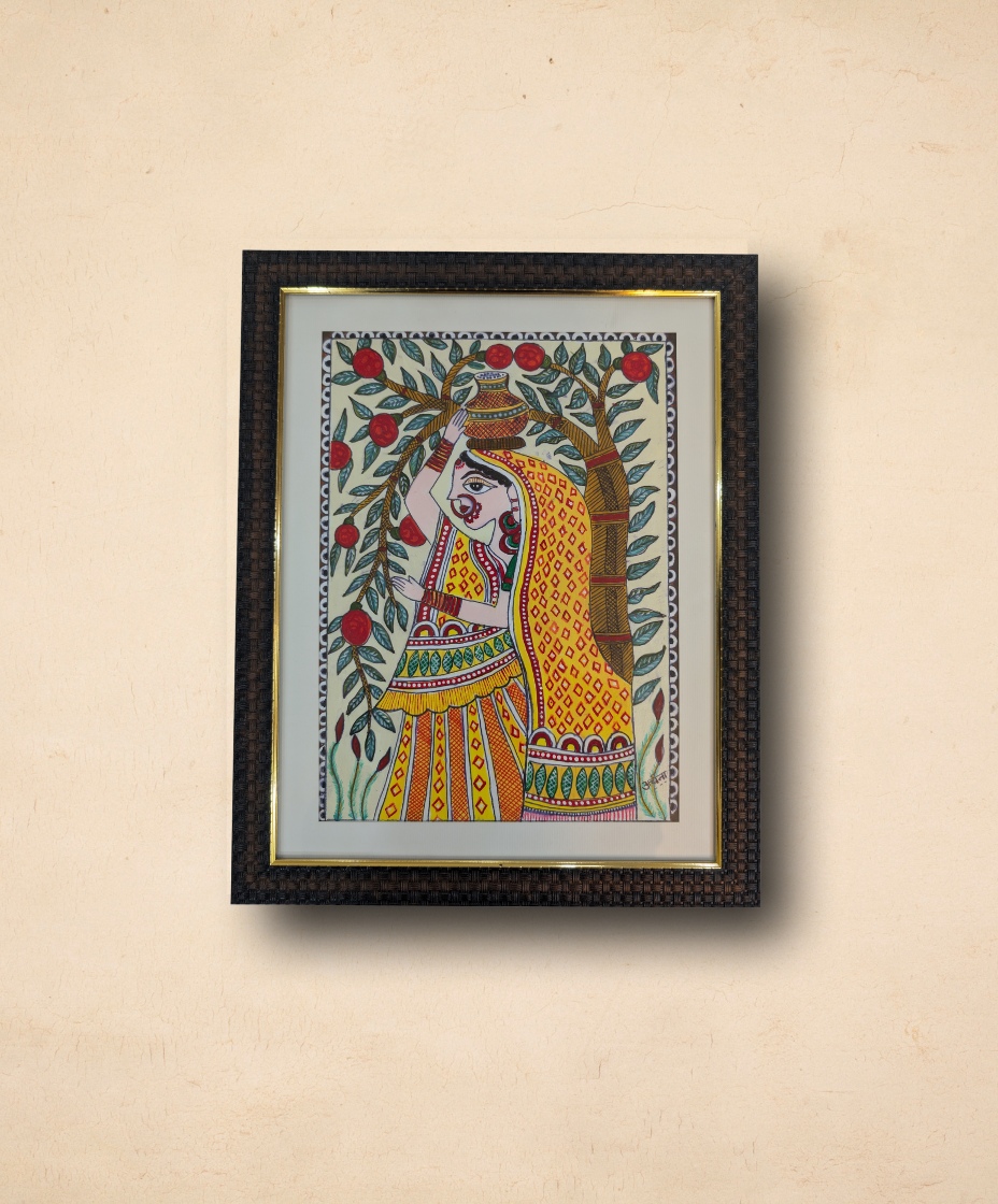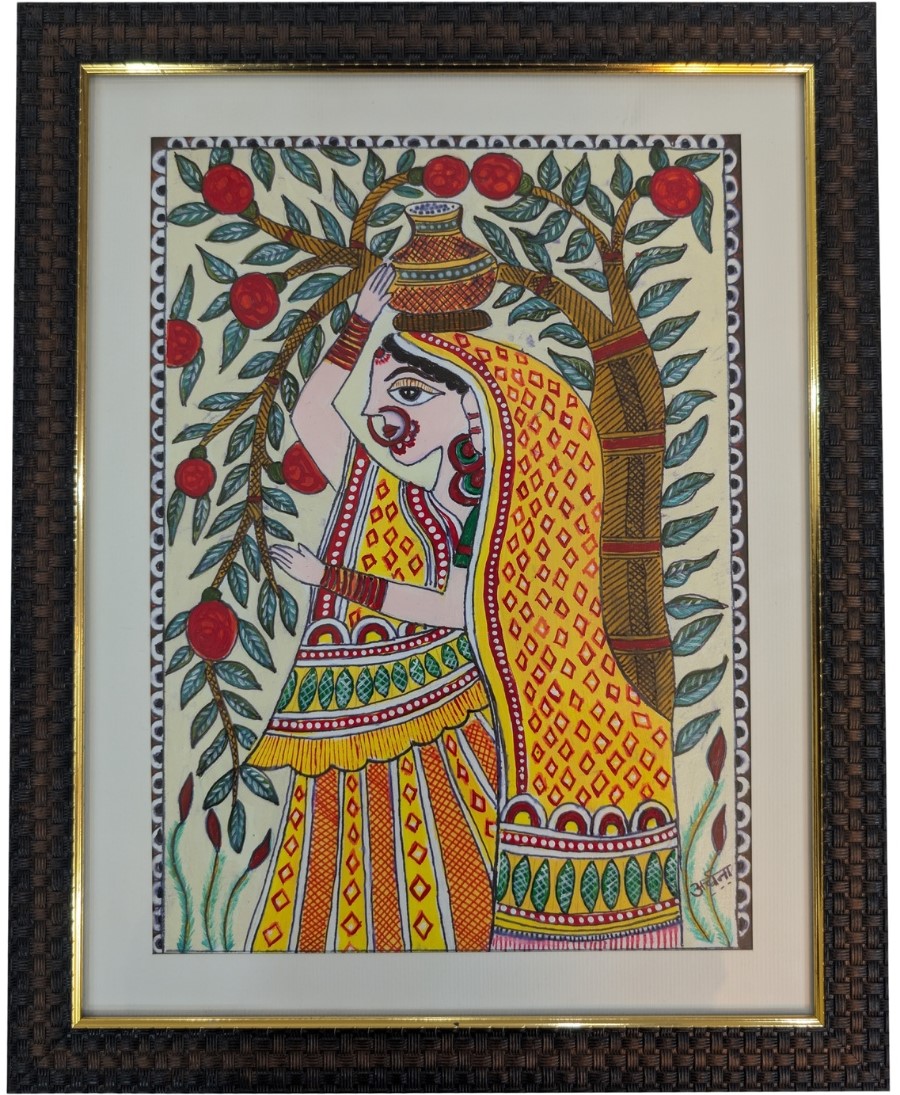Best Madhubani Painting Art – Lady Carrying Water – Handcrafted Rang by Archna
